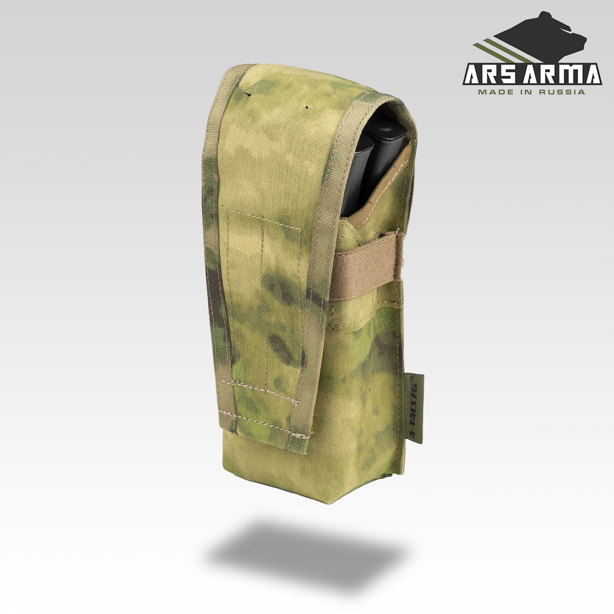 Подсумок для размещения АК магазинов. Конструкция магазина обеспечивает удобство извлечения или возврата подсумка в магазин даже одной рукой. Подсумок оснащен жесткой внешней стенкой и внутренней перегородкой благодаря чему подсумок можно использовать для переноски одного магазина, если нужно снизить профиль бронежилета без потери удобства. Клапан имеет утолщение для удобства открывания подсумка рукой в перчатках.