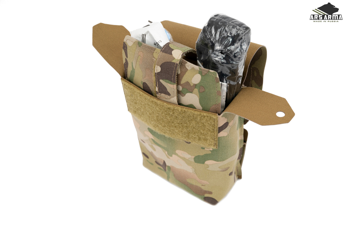 Средняя версия медицинского подсумка “Кассета”, предназначен для размещения индивидуального комплекта военной медицины для оказания первой медицинской помощи. “Кассета” обеспечивает быстрый доступ к содержимому подсумка. Клапан подсумка выполняет две функции - фиксирует содержимое внутри и является базой на которой размещаются всё содержимое, потяните за клапан и все окажется перед вами. Удобная форма клапана позволяет пользоваться им в перчатках.