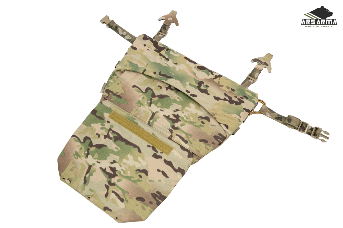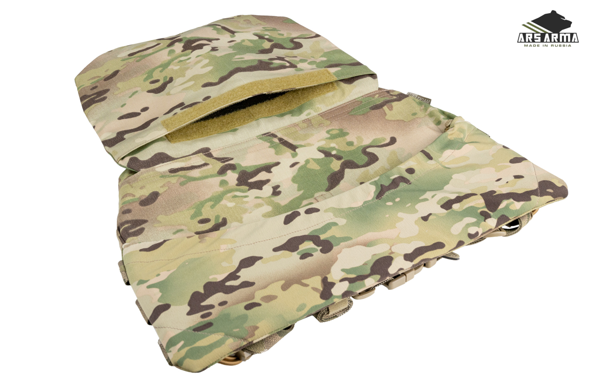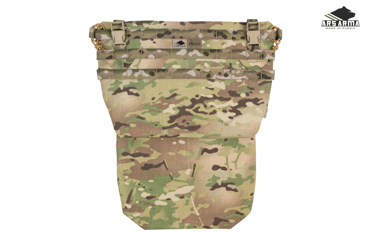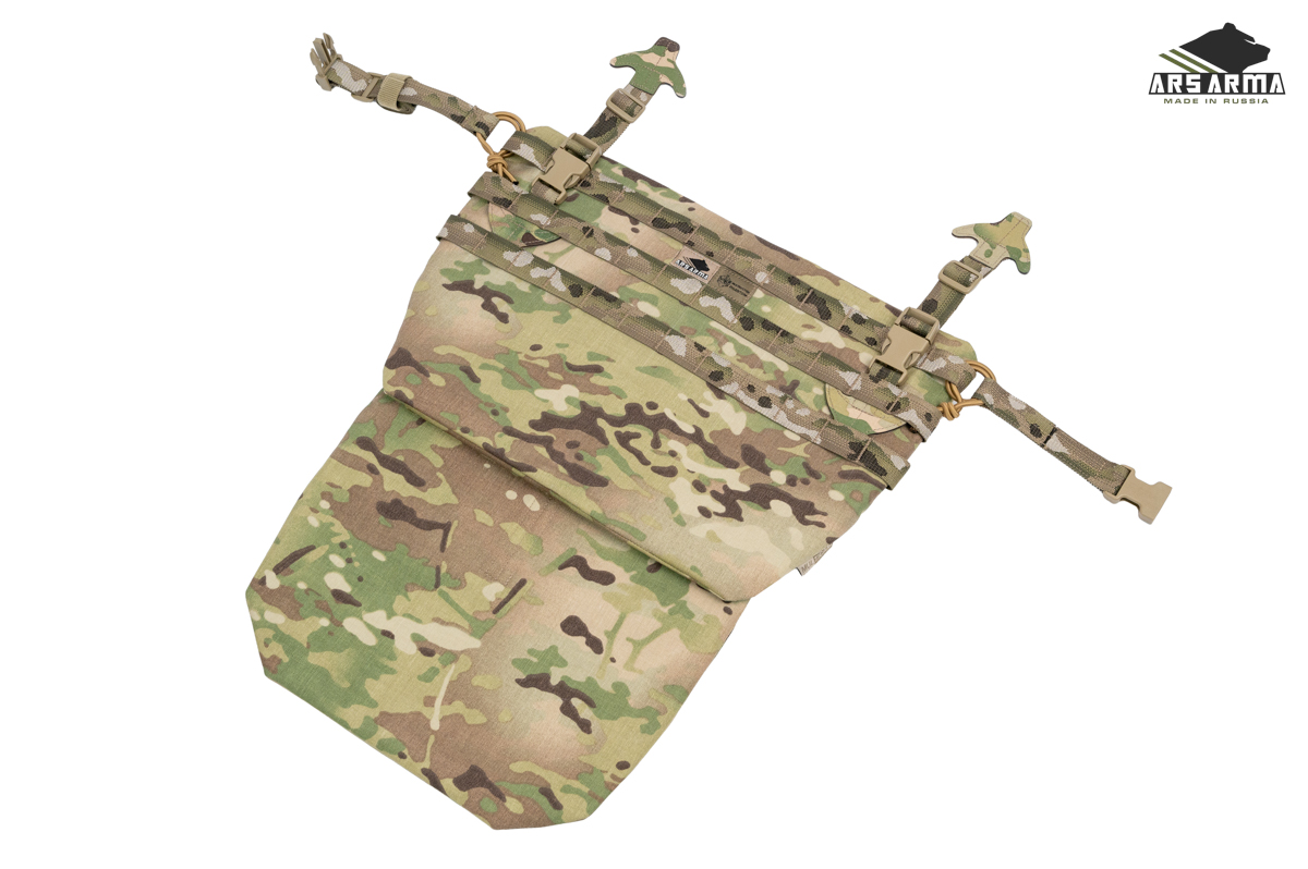 Двухсекционная сидушка А-25 Наваха 2.0. Данный продукт сочетает в себе новые технологии и старые проверенные решения. Предназначена для размещения уплотнителя и одного или двух баллистических пакетов, защищающих поясницу, таз и ноги от осколков. Сидушка может быть закреплена тремя способами: на MOLLE платформу бронежилета или пояса, а также как классическая сидушка с помощью поясного обхвата, в этом случае ее можно будет повернуть вперед и использовать как малый коврик, либо подложить под спину для короткого отдыха. Базовая комплектация подразумевает две вставки из изолона, который обеспечивает комфорт и теплоизоляцию, может быть заменен баллистическими пакетами. Меньший (нижний клапан) можно убрать в больший (верхний), чтобы сделать сидушку меньше. Также его можно быстро заправить в специальный эластичный карман на внутренней стенке сидушки. Поясной обхват может быть расположен выше или ниже. Якори крепления не занимают MOLLE ячейки. Сидушка разработана совместно с Российским Университетом Спецназа в лице начальника тактико - огневого направления Дмитрия «Фантома» Пилипенко https://vk.com/instructor_phantom.