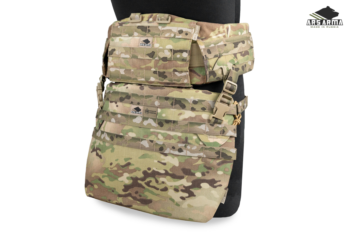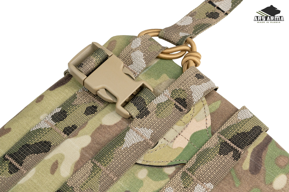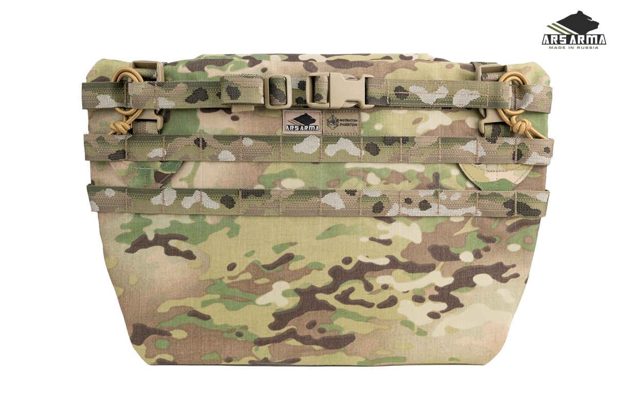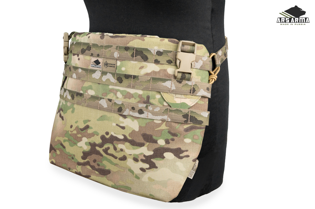 Двухсекционная сидушка А-25 Наваха 2.0. Данный продукт сочетает в себе новые технологии и старые проверенные решения. Предназначена для размещения уплотнителя и одного или двух баллистических пакетов, защищающих поясницу, таз и ноги от осколков. Сидушка может быть закреплена тремя способами: на MOLLE платформу бронежилета или пояса, а также как классическая сидушка с помощью поясного обхвата, в этом случае ее можно будет повернуть вперед и использовать как малый коврик, либо подложить под спину для короткого отдыха. Базовая комплектация подразумевает две вставки из изолона, который обеспечивает комфорт и теплоизоляцию, может быть заменен баллистическими пакетами. Меньший (нижний клапан) можно убрать в больший (верхний), чтобы сделать сидушку меньше. Также его можно быстро заправить в специальный эластичный карман на внутренней стенке сидушки. Поясной обхват может быть расположен выше или ниже. Якори крепления не занимают MOLLE ячейки. Сидушка разработана совместно с Российским Университетом Спецназа в лице начальника тактико - огневого направления Дмитрия «Фантома» Пилипенко https://vk.com/instructor_phantom.