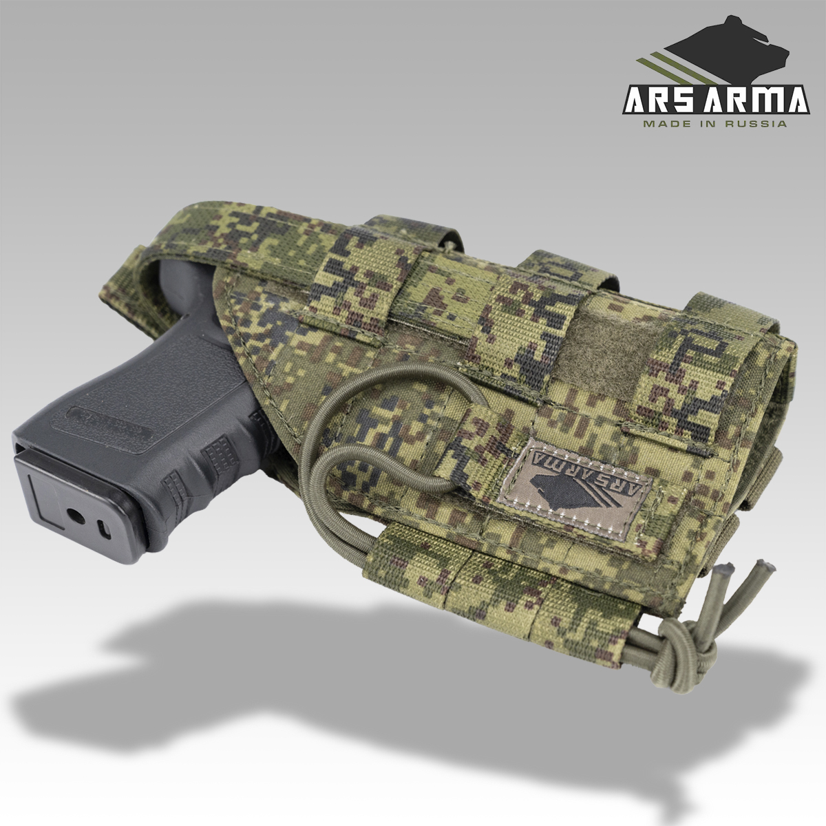 Кобура рассчитана для переноски пистолетов разных моделей, например, ПМ и ПММ, АПС Стечкин, ПЯ, семейство Colt, Beretta, Glock, Sig-Sauer и тд., не подойдет для пистолетов с дополнительным оборудованием типа фонаря или ЛЦУ. Имеет два типа фиксации, на кнопке - для быстрого извлечения, второй, на резинке - для надежной фиксации, походный режим. Крепится с помощью MOLLE интерфейса, может быть закреплена на брючном ремне шириной 50 мм как обычная кобура.