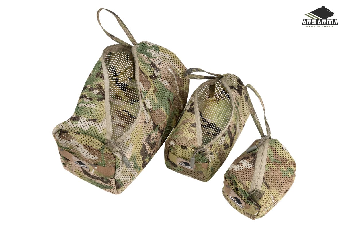 Комплект из трех сумок набора "Матрешки" предназначены для сортировки, хранения и переноски различной электроники, снаряжения, одежды, бивачного и альпинистского снаряжения внутри рюкзаков, сумок и баулов. Комплект из трех штук разного размера. Сумки имеют по две ручки, за которые их удобно переносить, вешать или крепить к чему либо. Сетка не даст воде задержаться в подсумке, если как то туда попадет, также если ваши вещи мокрые, то благодаря сетке они не сопреют в ней и смогут высохнуть.