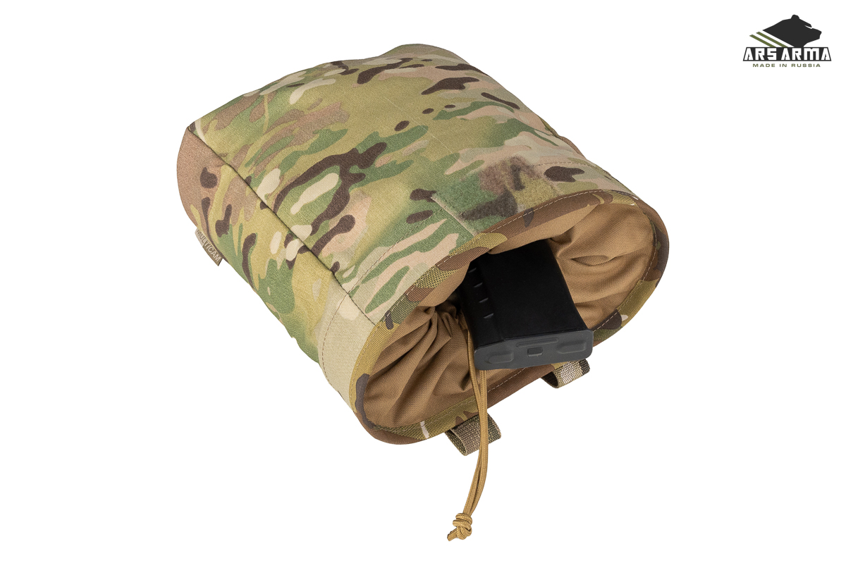 В остальном подсумок остался прежним - легкий и компактный сброс с затягивающейся эластичным кордом горловиной, которая защитит вас от досадных потерь магазинов при активном передвижении и перемещений ползком. Универсальный и простой метод крепления допускает установку на MOLLE интерфейс, обычный брючные пояс и на внутренний ремень разгрузочного пояса при условии наличия доступа к нему. Оптимальная вместительность в 6-7 автоматных магазинов.