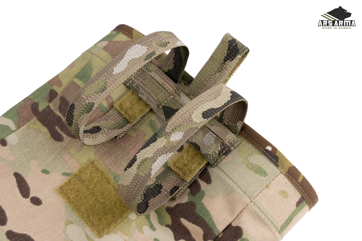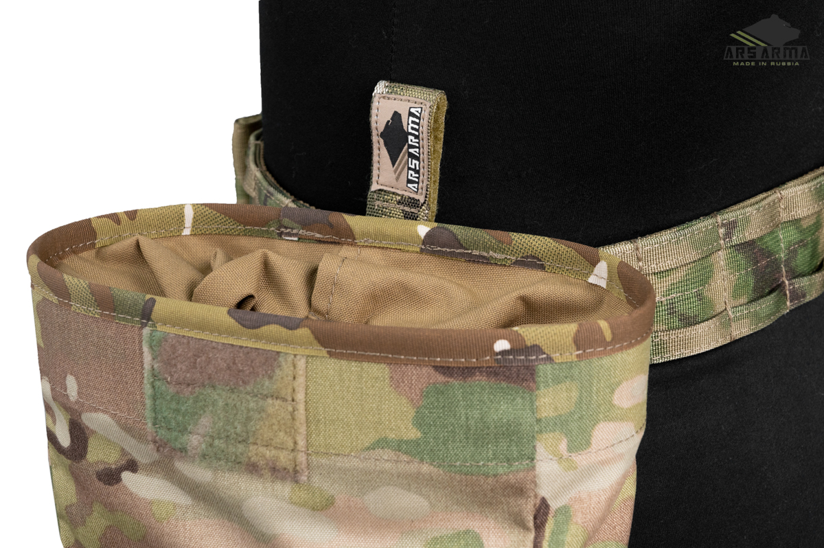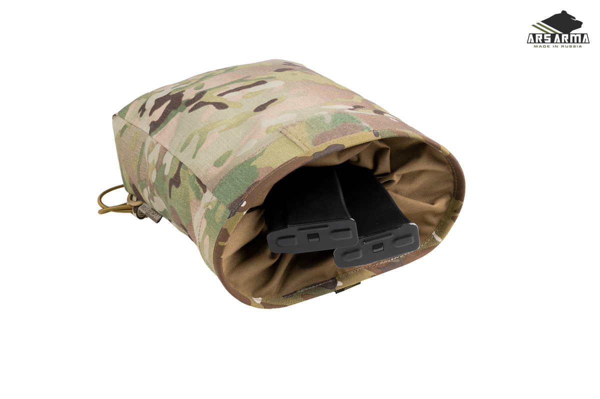 В остальном подсумок остался прежним - легкий и компактный сброс с затягивающейся эластичным кордом горловиной, которая защитит вас от досадных потерь магазинов при активном передвижении и перемещений ползком. Универсальный и простой метод крепления допускает установку на MOLLE интерфейс, обычный брючные пояс и на внутренний ремень разгрузочного пояса при условии наличия доступа к нему. Оптимальная вместительность в 6-7 автоматных магазинов.
