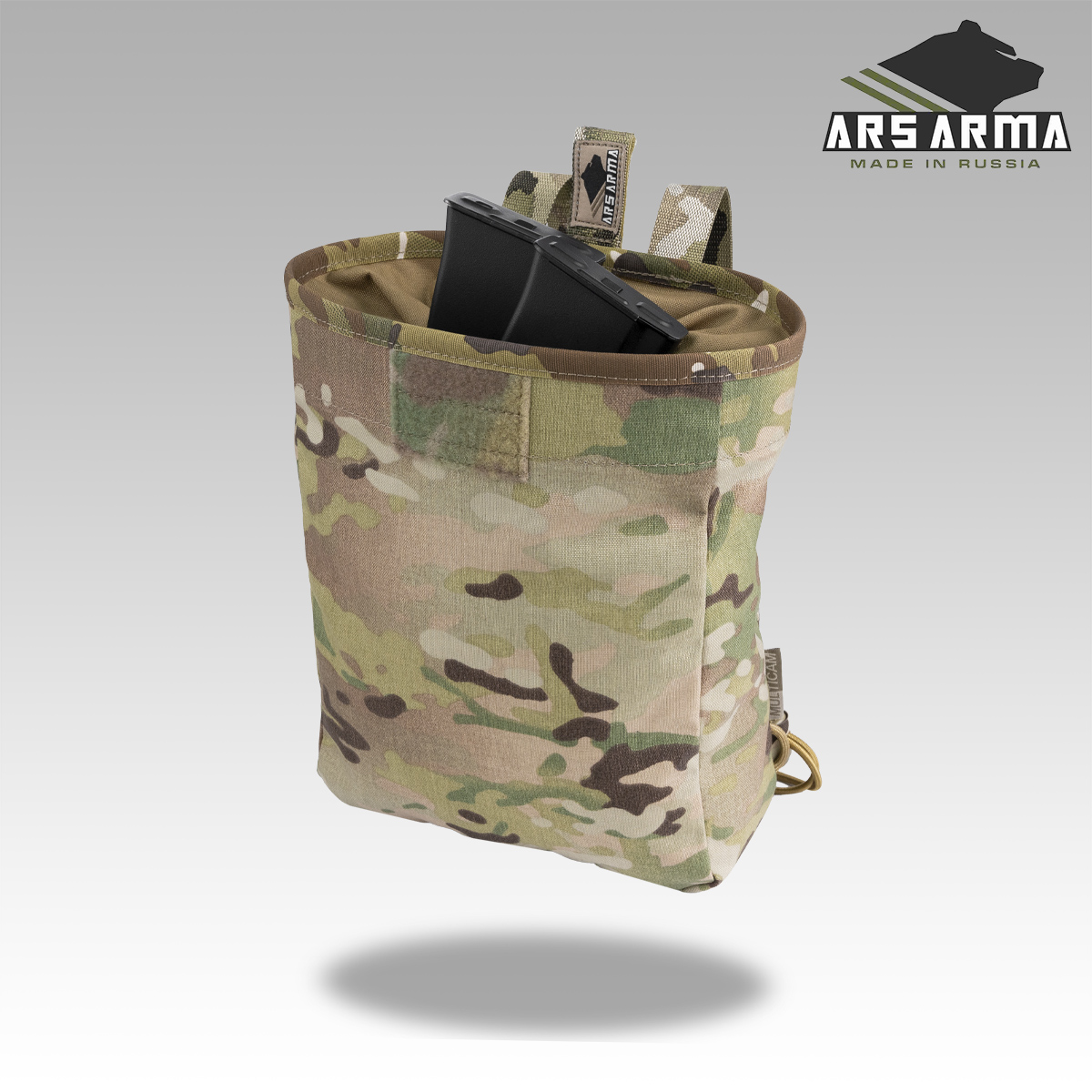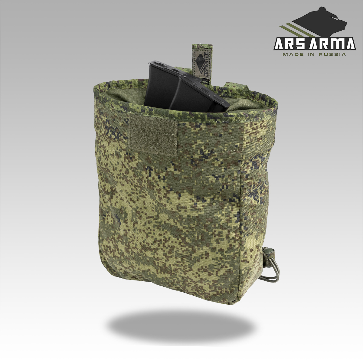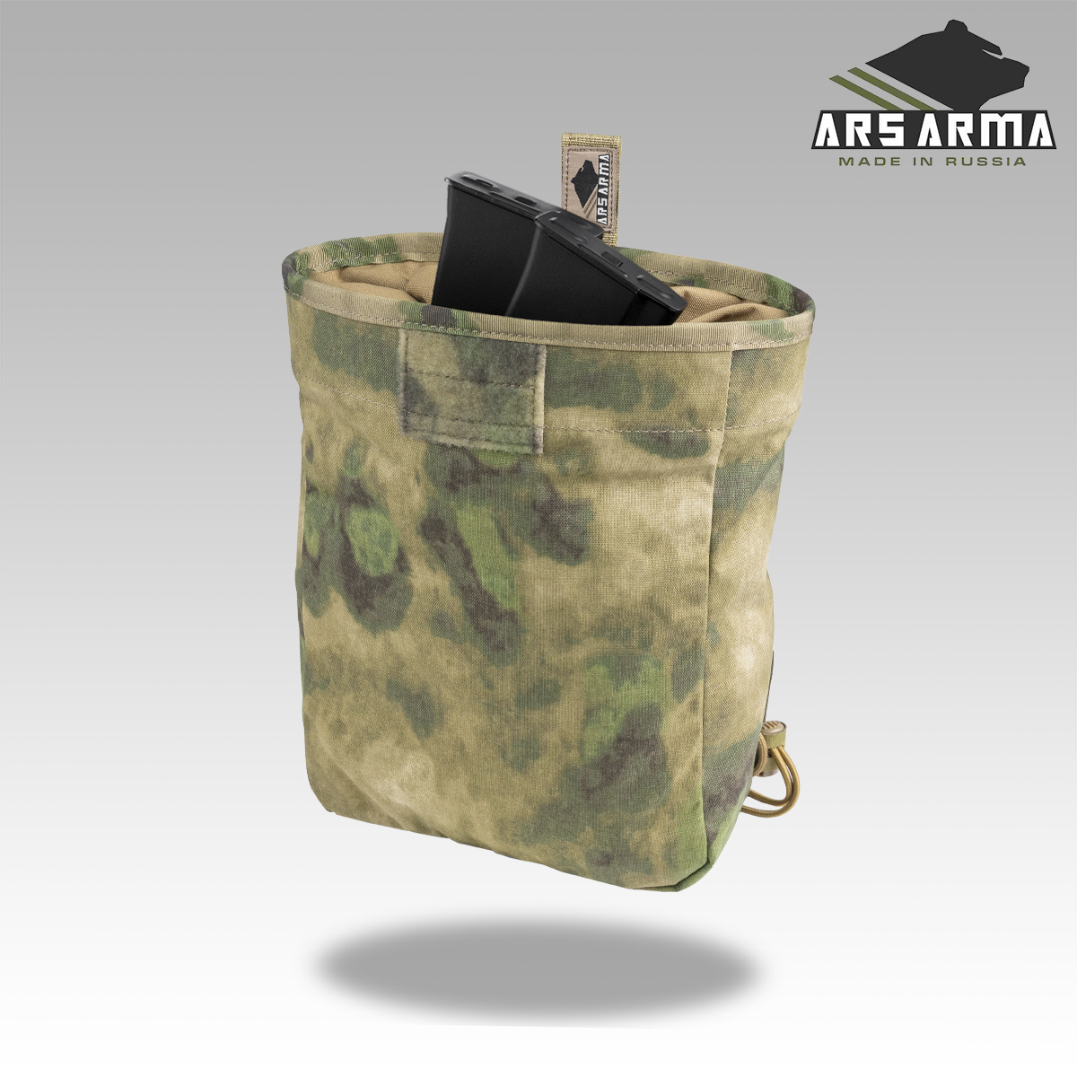 В остальном подсумок остался прежним - легкий и компактный сброс с затягивающейся эластичным кордом горловиной, которая защитит вас от досадных потерь магазинов при активном передвижении и перемещений ползком. Универсальный и простой метод крепления допускает установку на MOLLE интерфейс, обычный брючные пояс и на внутренний ремень разгрузочного пояса при условии наличия доступа к нему. Оптимальная вместительность в 6-7 автоматных магазинов.