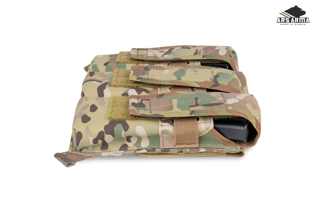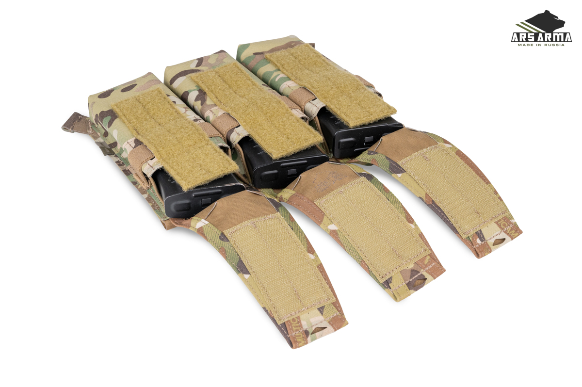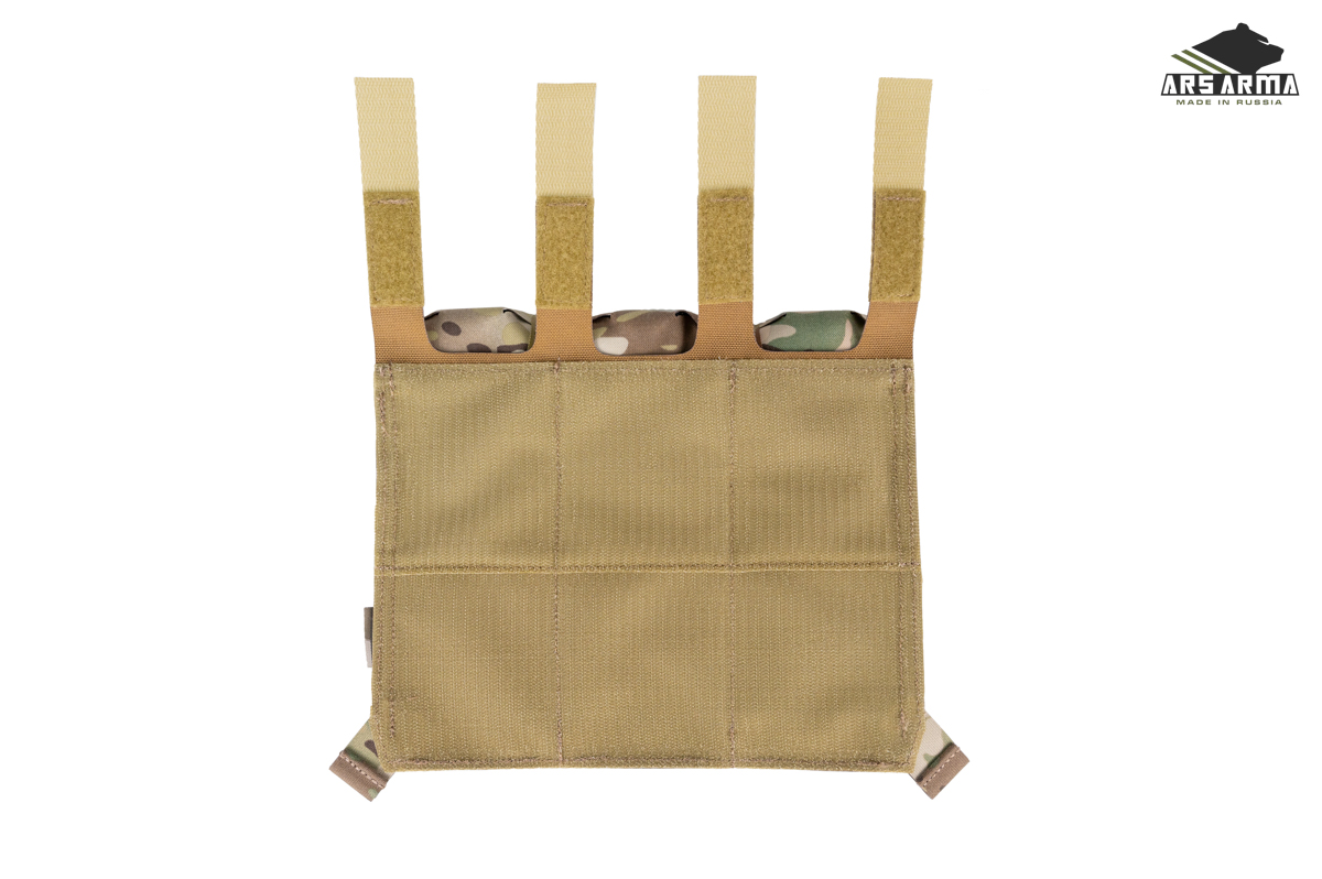 Универсальная панель для размещения 3х магазинов АК и М серии, предназначенная для установки на все бронежилеты нашего производства. Удобные клапаны магазинов для работы в перчатках. Жесткая передняя стенка с пластиком облегчают работу с панелью одной рукой. При необходимости быстрого доступа к магазинам заправьте клапан внутрь подсумка.