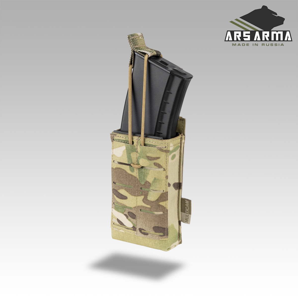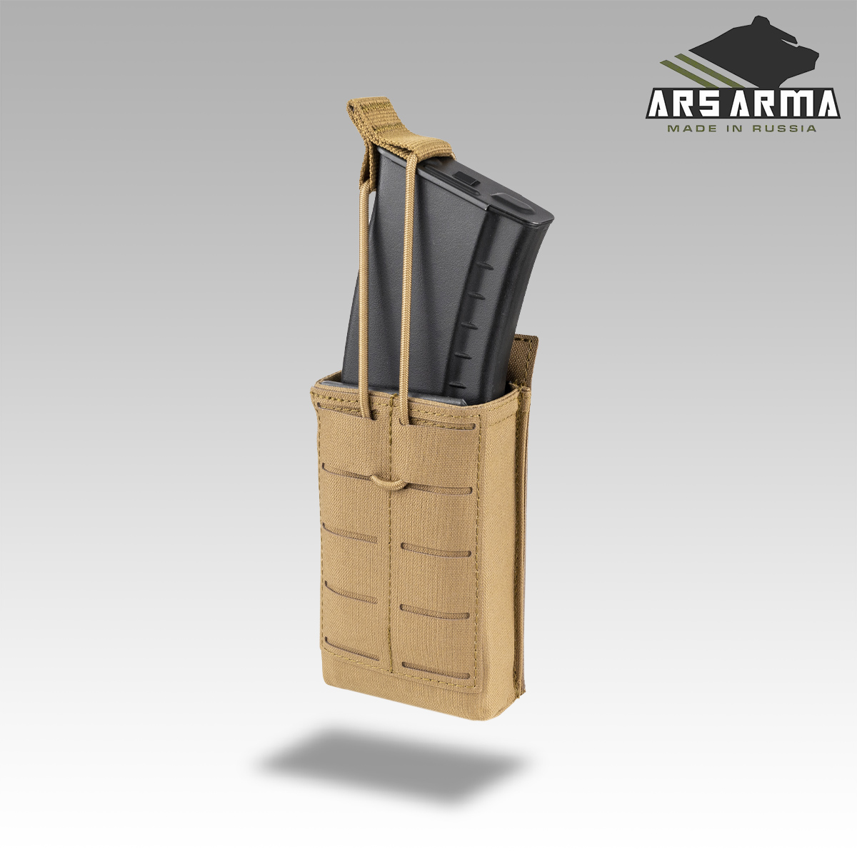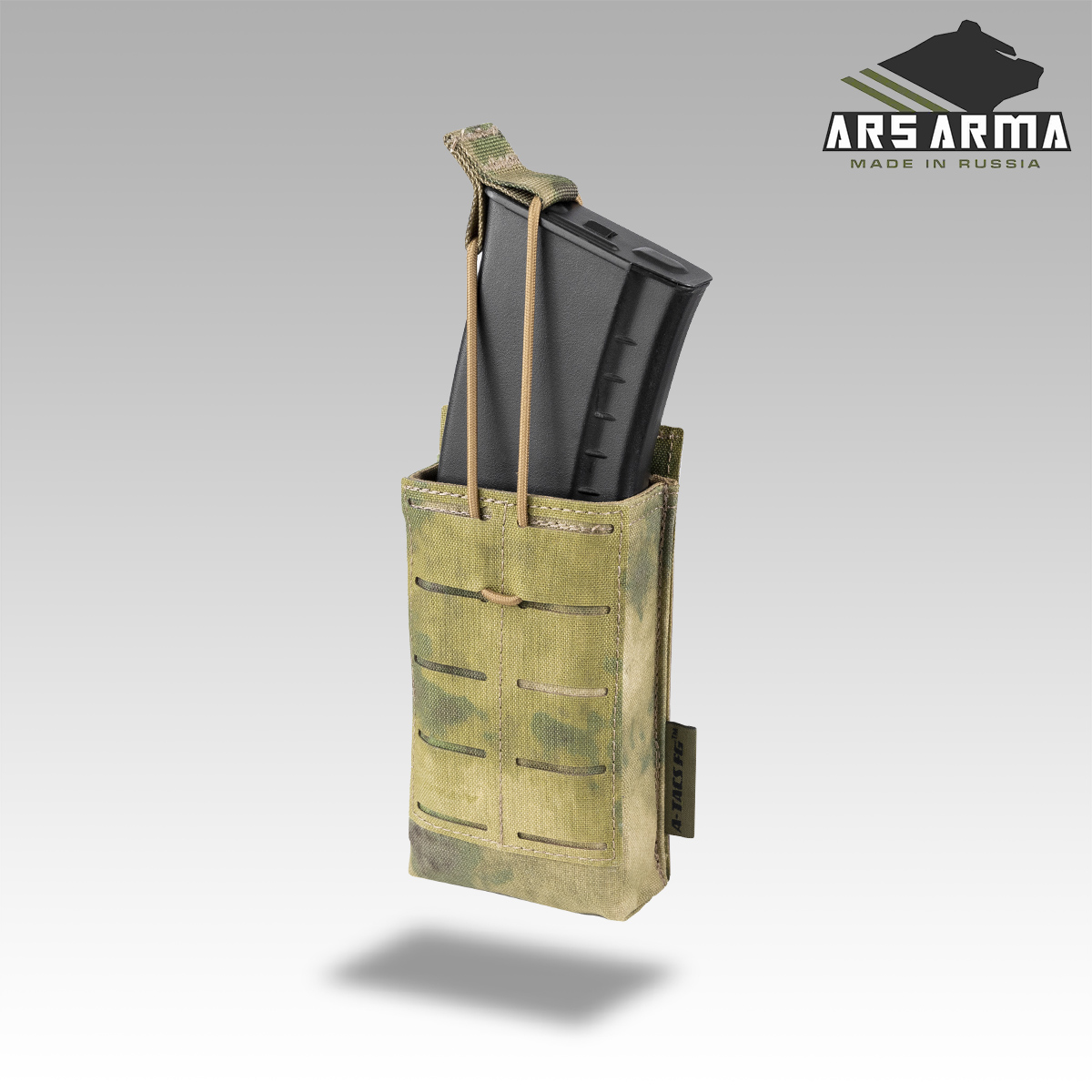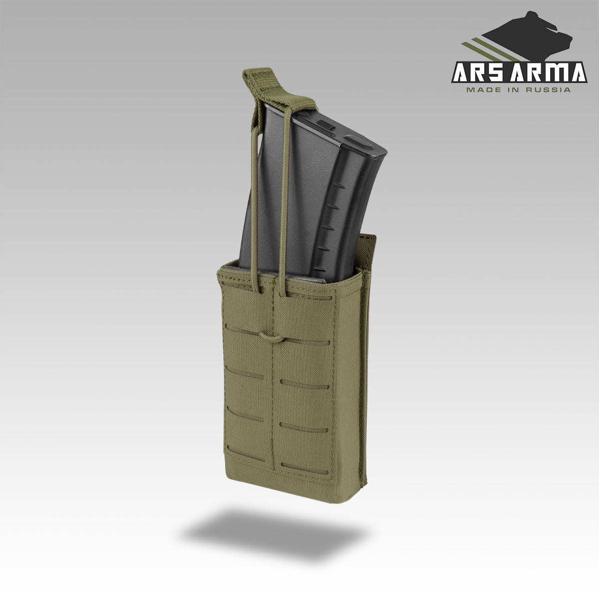 Каркасный подсумок штурмовой открытого типа для быстрого извлечения магазина, при необходимости магазин удерживается кордом с пуллером. На внешней стороне расположен интерфейс MOLLE для возможности установить дополнительные подсумки или другую экипировку. Компактный, легкий, универсальный подсумок для АК\М4 магазинов, подойдет там, где нужно обеспечить быстрое извлечение магазина. Главная отличительная черта этой версии подсумка в возможности быстрого возврата магазина в подсумок благодаря горловине, которая держит форму.