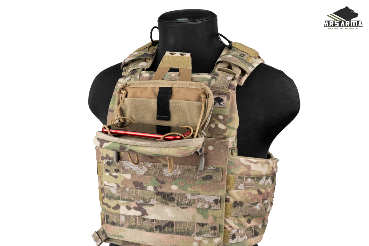 Нагрудный подсумок «Сейф 51» малый — это компактное и эргономичное решение для защищенного ношения телефона и необходимых мелочей. Его анатомичная форма не стесняет движений и не мешает доступу к магазинам на разгрузочном жилете. Конструкция обеспечивает надежную фиксацию благодаря дополнительному креплению к жилету, что уменьшает смещение и профиль. Внутренний карман предназначен для установки защитной баллистической вставки для телефона, а система дренажа быстро отводит воду.