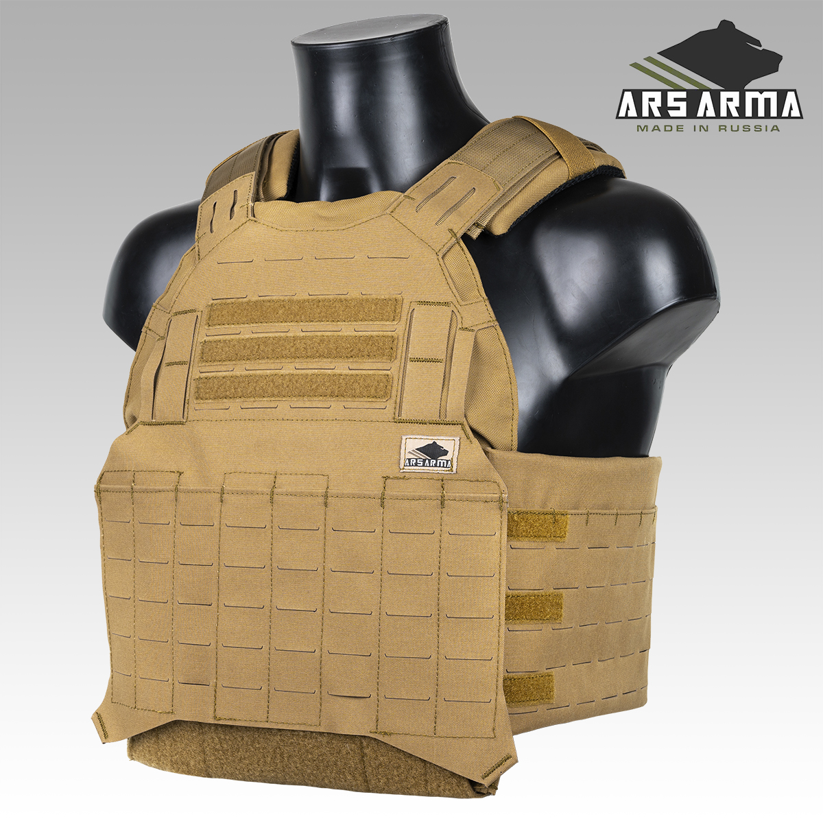 Конструкция - жилет предназначен для плит широкого диапазона габаритов. Баллистический пакет размещается отдельно от плит и обладает большей площадью. Система крепления подсумков MOLLE Minus обеспечивает небольшой вес и низкий профиль жилета.